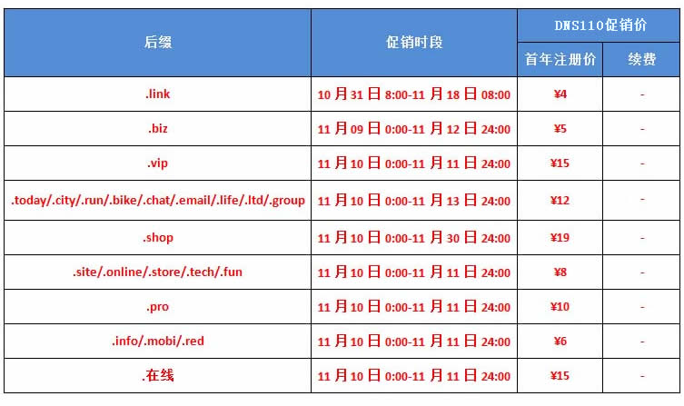 尊敬的用戶: 您好! 雙十一狂歡節即將來臨,十一月域名價優物美值得您入手。域名頻道為所有客戶推出一系列域名優惠福利,具體安排如下: